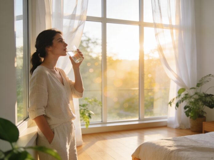 The bedroom has two distinct circadian jobs that its lighting design needs to serve simultaneously and in the correct sequence. In the morning it should be capable of delivering bright, blue-rich light quickly — ideally through the easy exposure of natural light from east-facing windows — to support the cortisol awakening response and circadian anchoring. In the evening and throughout the night it should deliver the opposite — complete darkness during sleep and warm, dim light in the hour before bed that preserves the melatonin rise the body requires for sleep initiation. The practical design solution is blackout window coverings that can be fully opened in the morning and fully closed at night, warm-spectrum bulbs in all bedroom fixtures, and the complete removal of device screens and indicator lights from the sleep environment.