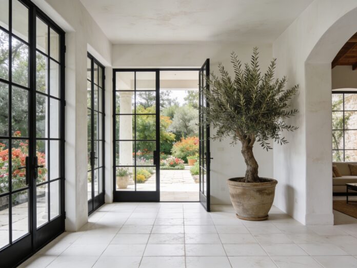 In summer the design priorities shift. The challenge is managing the intensity and duration of light exposure in ways that support the body’s appropriate summer biology without creating the light pollution that disrupts sleep in the long summer evenings. Exterior shading — awnings, overhangs, exterior shutters — reduces solar heat gain and interior light intensity during the hottest and brightest midday hours without blocking the morning and evening light that supports circadian anchoring. Interior window films that reduce UV and visible light transmission without significantly altering the spectral quality of the light are another option for rooms that receive direct sun exposure during the hours when intensity needs to be moderated. And the management of artificial light in the evening hours is even more important in summer, when the late sunset can delay melatonin onset if indoor lighting reinforces the body’s perception that the day is still ongoing.